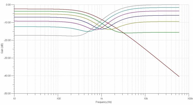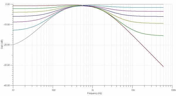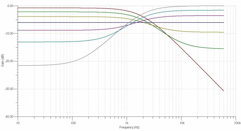 - Grey curve is the Pot at 100% - highpass filter - with -0.4dB Gain