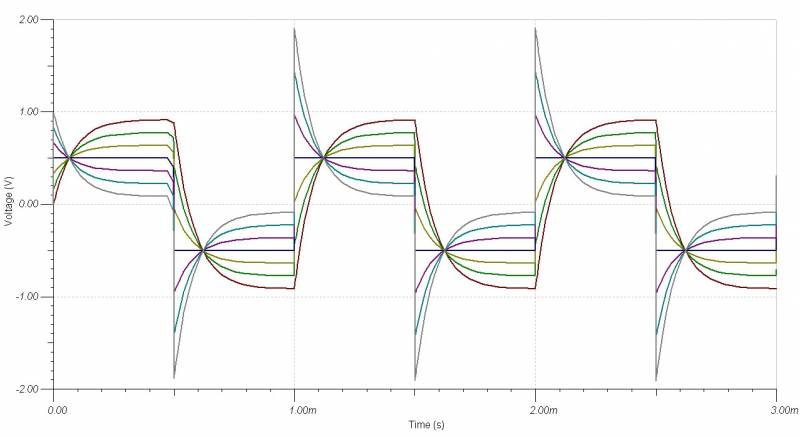 Here is the time response of the tone filter example above when fed with a 1Hz square wave :