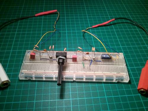 Design constraints were kept to the minimum : only components with nominal values (multiples of 10), only one gain control for the first stage.